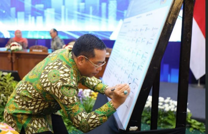Gubernur Jawa Timur Khofifah Indar Parawansa, Kapolda Jatim, serta para bupati dan wali kota se-Jawa Timur menandatangani komitmen bersama mewujudkan iklim usaha yang inklusif, berkelanjutan, dan aman.