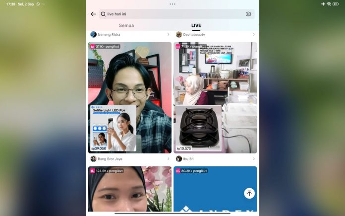 Sementara itu, pada menu TikTok Shop, fitur Live Shopping juga sudah kembali aktif. Di sana terlihat banyak mitra UMKM mulai menyiarkan langsung produk-produk mereka untuk menarik perhatian pembeli. (jun)