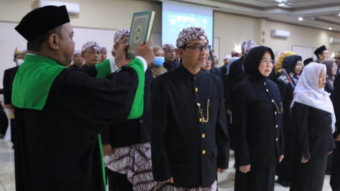 Prosesi pengambilan sumpah dan pelantikan berlangsung di ruang Puri Manggala Bhakti, Selasa (30/9/2025) sore.