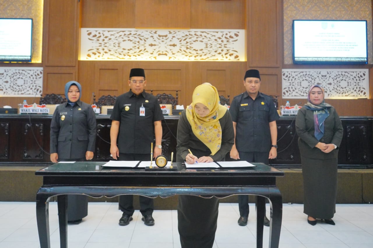 Rapat paripurna kemudian ditutup dengan penandatanganan keputusan DPRD dan persetujuan bersama antara Wali Kota dan pimpinan DPRD. Giat ini juga dihadiri forkopimda, asisten daerah, serta para kepala perangkat daerah.