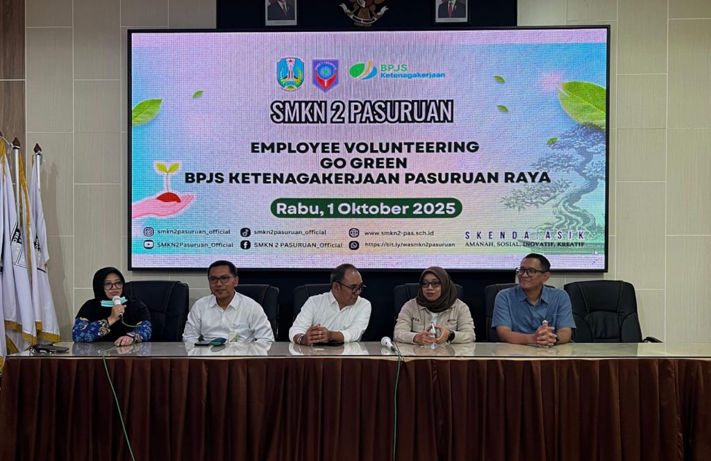 Pasuruan (WartaBromo.com) – Ada suasana berbeda di SMKN 2 Pasuruan, pagi ini. Halaman sekolah yang biasanya ramai oleh aktivitas belajar, kali ini dipenuhi semangat hijau dari kegiatan Employee Volunteering Go Green yang digelar oleh BPJS Ketenagakerjaan Pasuruan Raya.