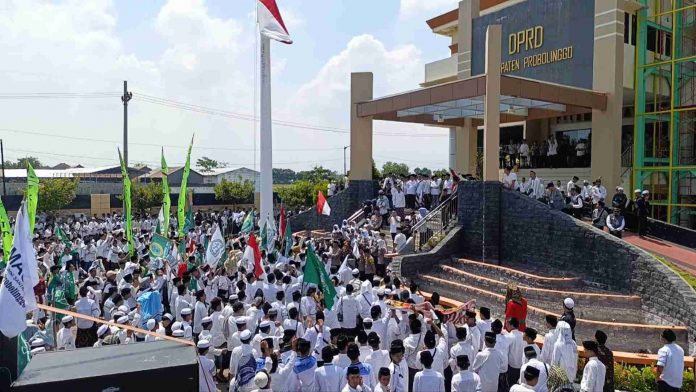 Probolinggo (WartaBromo.com) — Ribuan santri dan alumni pondok pesantren di Kabupaten Probolinggo menggelar aksi damai di depan kantor DPRD setempat, Minggu (19/10/2025).