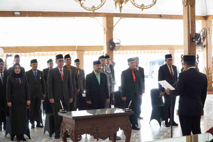 Sebanyak 19 pejabat tinggi pratama resmi dilantik dan diambil sumpah jabatannya oleh Bupati Probolinggo, dr. Mohamad Haris di Pendopo Prasaja Ngesti Wibawa, Senin (20/10/2025).