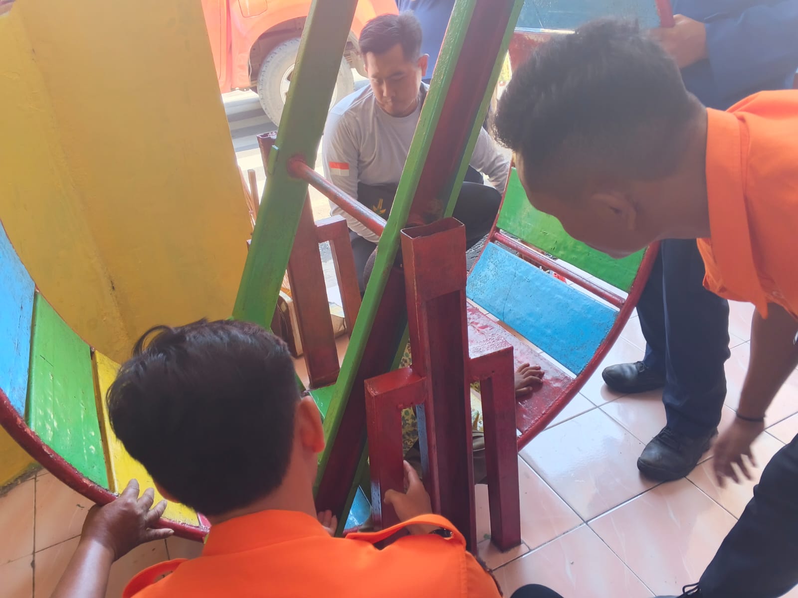 Dramatis! Damkar Evakuasi Bocah Terjepit Kincir Putar di TK Gadingrejo