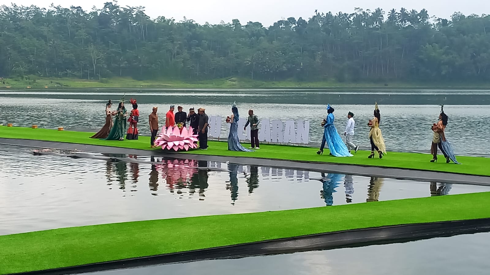 Dalam suasana sejuk khas kaki Gunung Argopuro, puluhan model berjalan anggun di atas catwalk terapung, mempersembahkan parade batik tepi ranu yang memukau ratusan penonton.