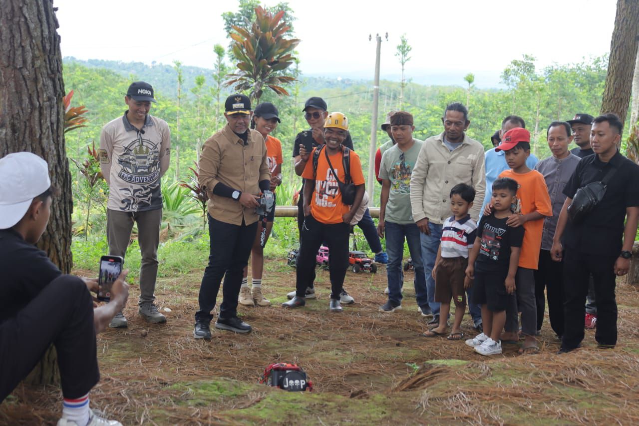 Suasana makin ramai dengan atraksi mobil remote control offroad, yang bahkan menarik perhatian Bupati Gus Haris untuk ikut mencoba salah satu mobil mini tersebut.