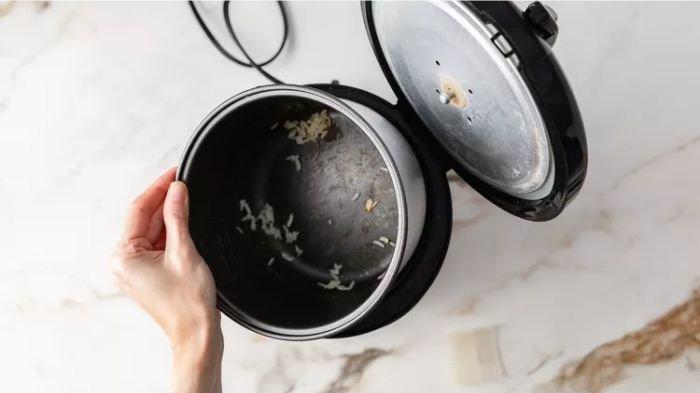 Membiarkan rice cooker aktif dalam mode penghangat terlalu lama juga bisa memicu bagian bawah nasi mengering dan menempel. Jika tidak langsung dimakan, matikan rice cooker dan biarkan nasi ditutup agar tetap lembap alami.