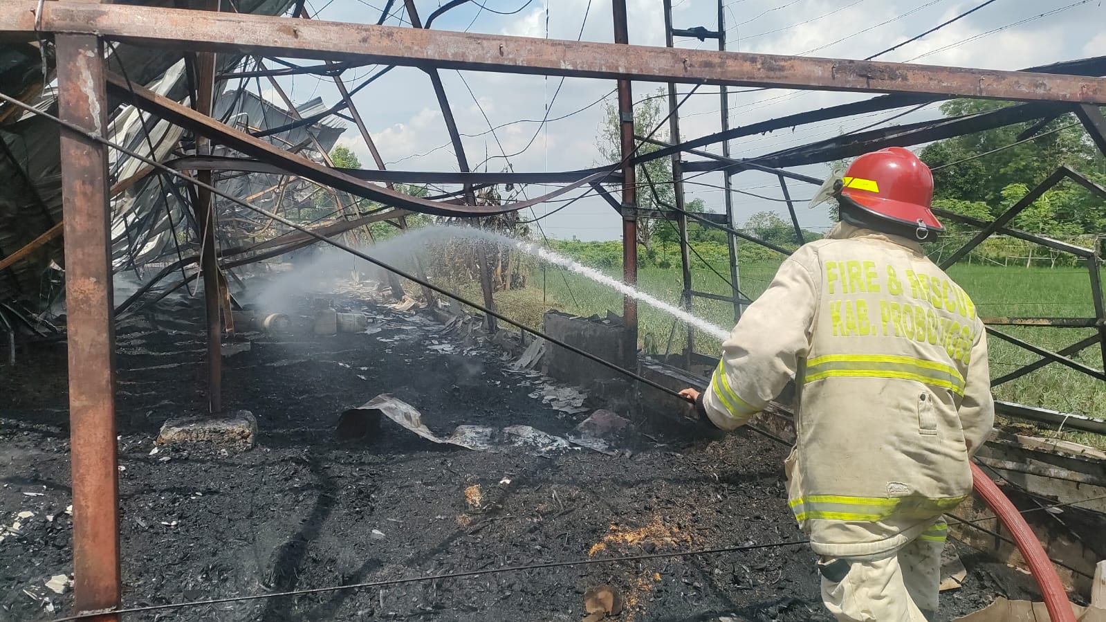 Peristiwa yang terjadi sekitar pukul 06.00 WIB itu menghanguskan seluruh bangunan dan menyebabkan ribuan ayam milik warga Desa Binor, Kecamatan Paiton, Abdul Qomar, mati terpanggang.