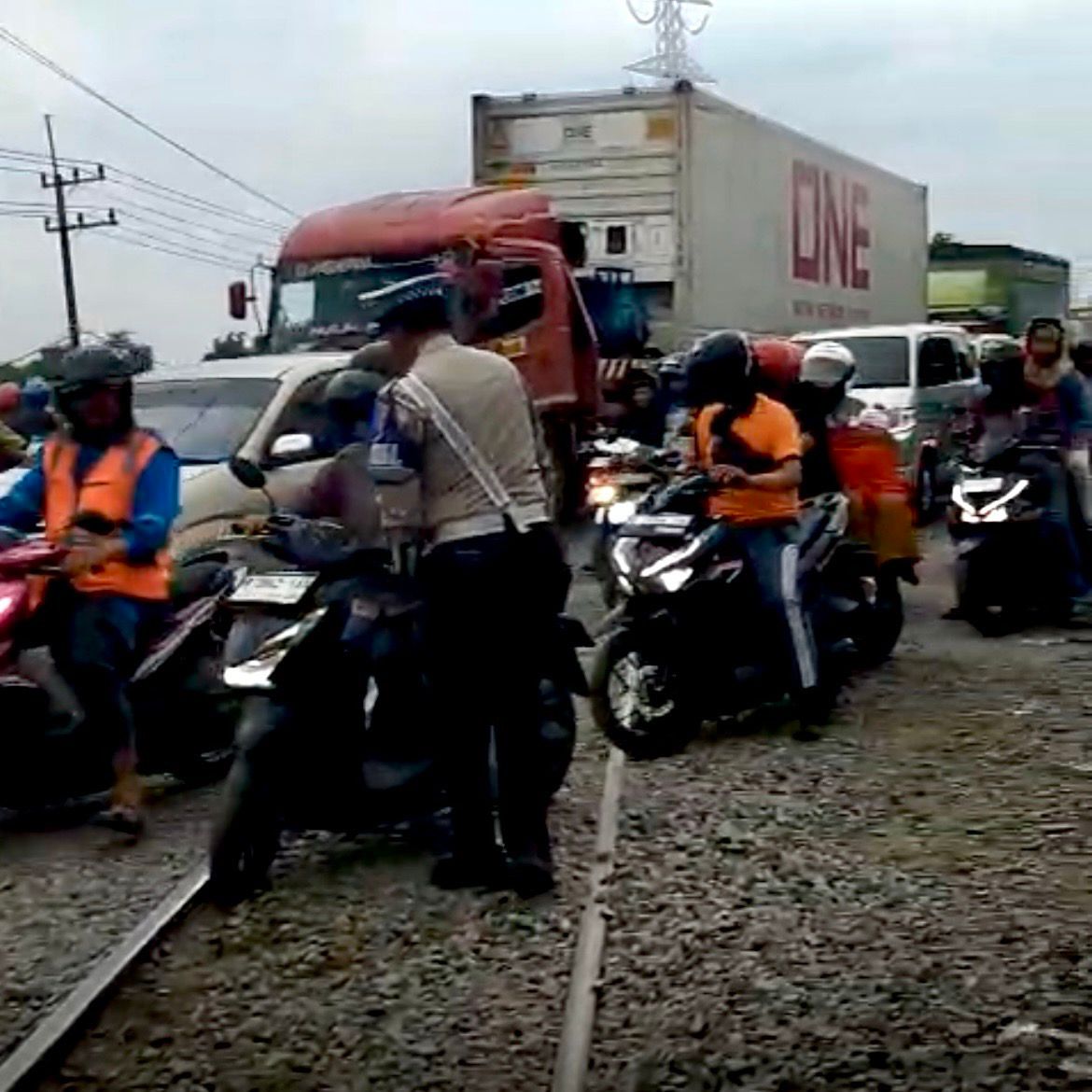 Meski tidak tampak aktivitas perbaikan besar, sejumlah petugas kepolisian terlihat mengatur arus kendaraan dan membantu pengendara melintas di atas rel. Namun kehadiran petugas belum mampu menangani padatnya antrean kendaraan.