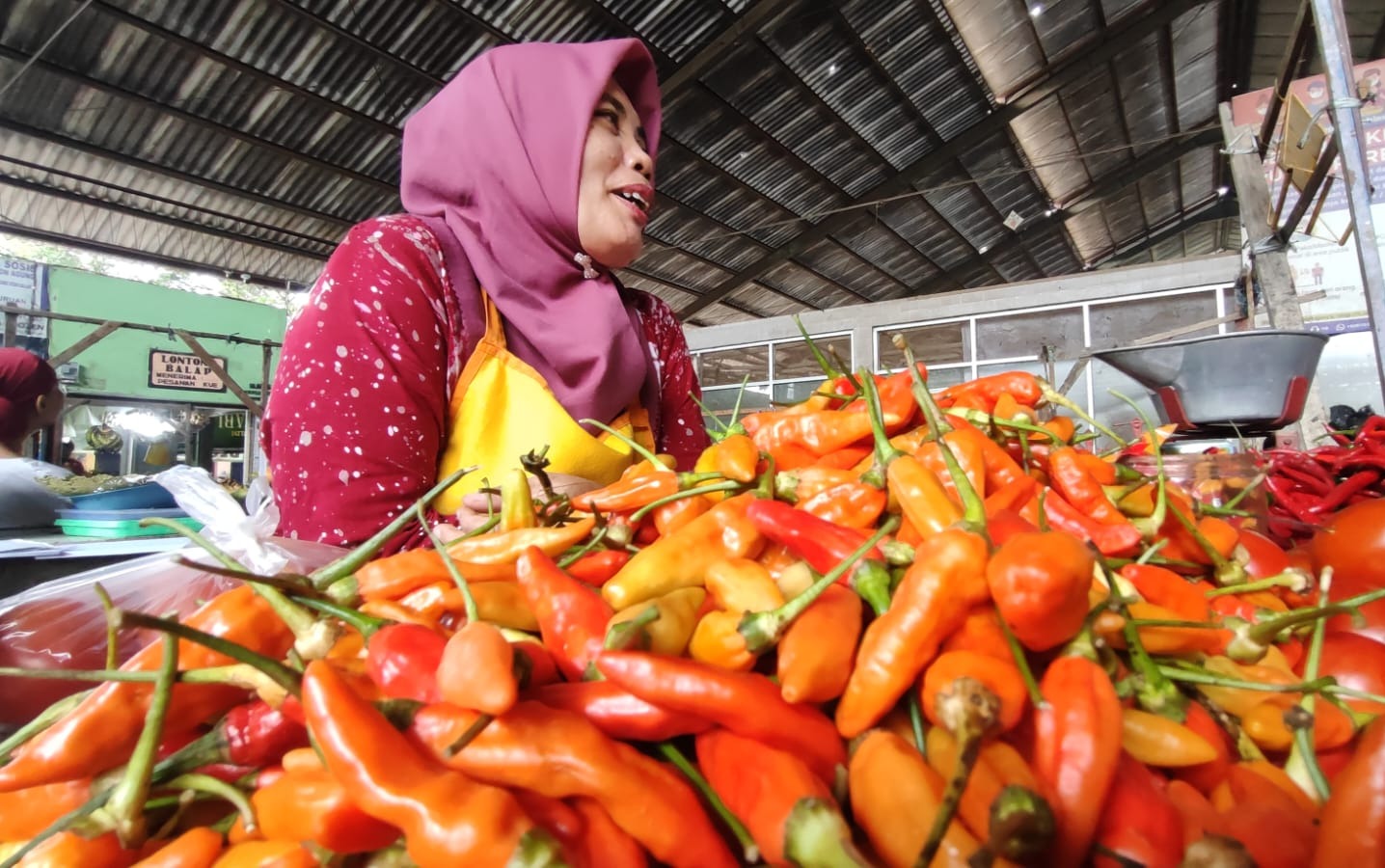 Khodijah, salah satu pedagang cabai, mengaku kewalahan mendapatkan pasokan berkualitas.