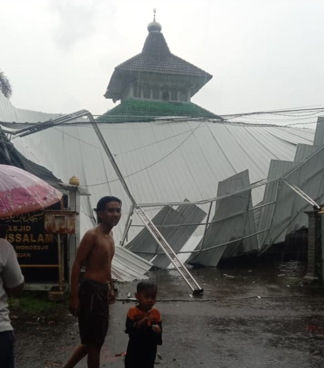 Hujan Lebat, Atap Teras Masjid di Wonorejo Ambruk