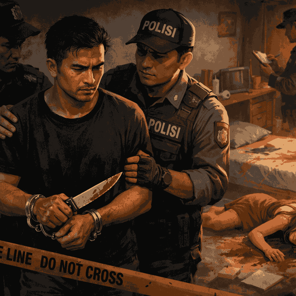Pelaku sempat melarikan diri ke arah gang perumahan di samping rumah kos. Sementara warga naik ke lantai dua dan menemukan korban dalam kondisi tengkurap dengan banyak luka tusuk.