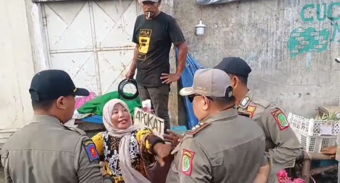 Kericuhan terjadi saat petugas mulai membongkar lapak PKL yang berdiri di atas trotoar. Salah satu pedagang terlihat emosional, menantang petugas untuk berkelahi dan menolak dipindahkan dari lokasi berjualan yang dilarang.