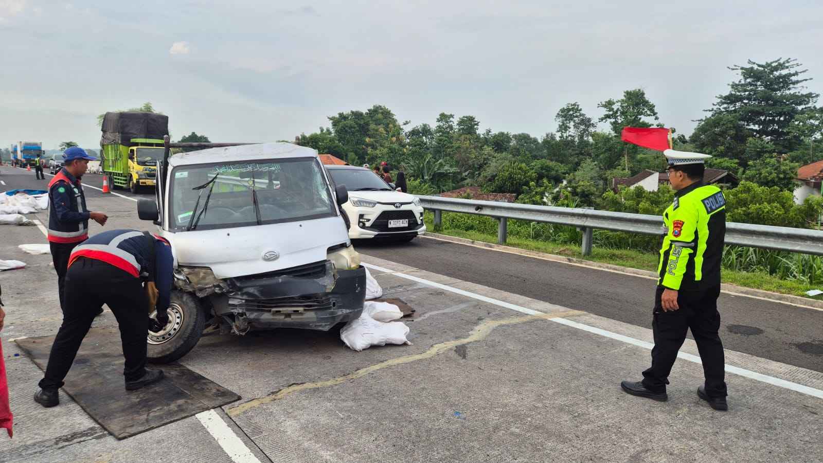 “Akibat pecah ban, kendaraan menabrak median jalan lalu terguling dengan posisi akhir menghadap ke arah timur,” ujar Firman.