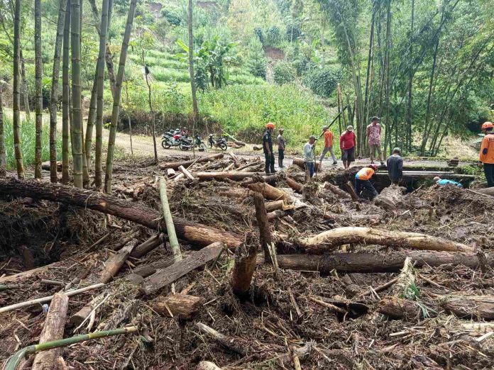 “Melaporkan Pak Camat, ini di Dusun Krajan I tepatnya Pedukuhan Sekar Kuning, Besuki. Terjadi banjir bandang dan material kayu pinus sekarang menutupi jembatan,” ujar Pujianto dalam rekaman video tersebut.