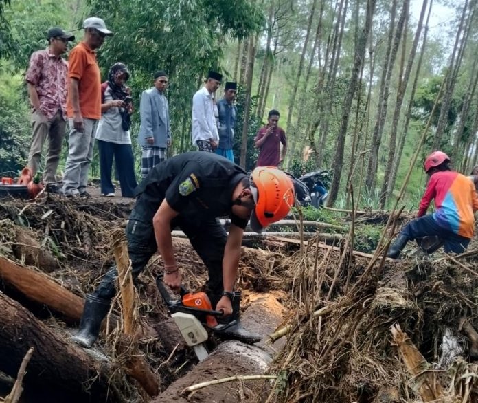“Aliran sungai yang deras membawa material tersebut dan akhirnya tersumbat di Jembatan Sekar Kuning, Desa Andonosari, sehingga akses jalan desa sempat terhalang,” ujarnya.