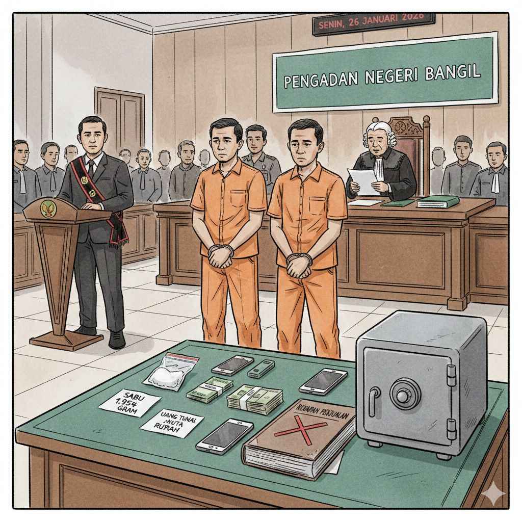 Putusan tersebut dibacakan dalam sidang yang digelar pada Senin (26/1/2026). Majelis hakim menyatakan kedua terdakwa terbukti secara sah dan meyakinkan melakukan permufakatan jahat sebagai perantara jual beli narkotika jenis sabu.