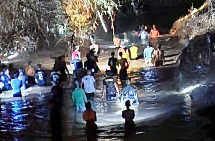 Penyisiran dilakukan di sekitar titik yang diduga menjadi lokasi jatuhnya korban, termasuk di area bantaran sungai, tumpukan rerumputan, dan akar bambu.