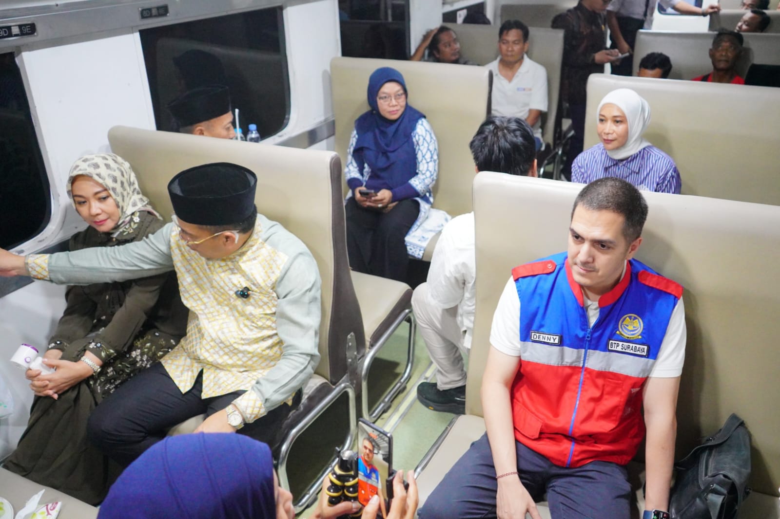 Wali Kota Probolinggo dr Aminuddin menikmati perjalanan Commuter Line Supas Probolinggo. Foto ; diskominfo