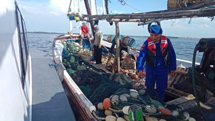 “Pada saat patroli, anggota menemukan kapal nelayan yang diduga menggunakan alat tangkap yang dilarang berupa jaring trawl. Setelah dilakukan pemeriksaan, petugas kemudian mengamankan yang bersangkutan beserta barang bukti untuk proses pemeriksaan lebih lanjut,” ujarnya.