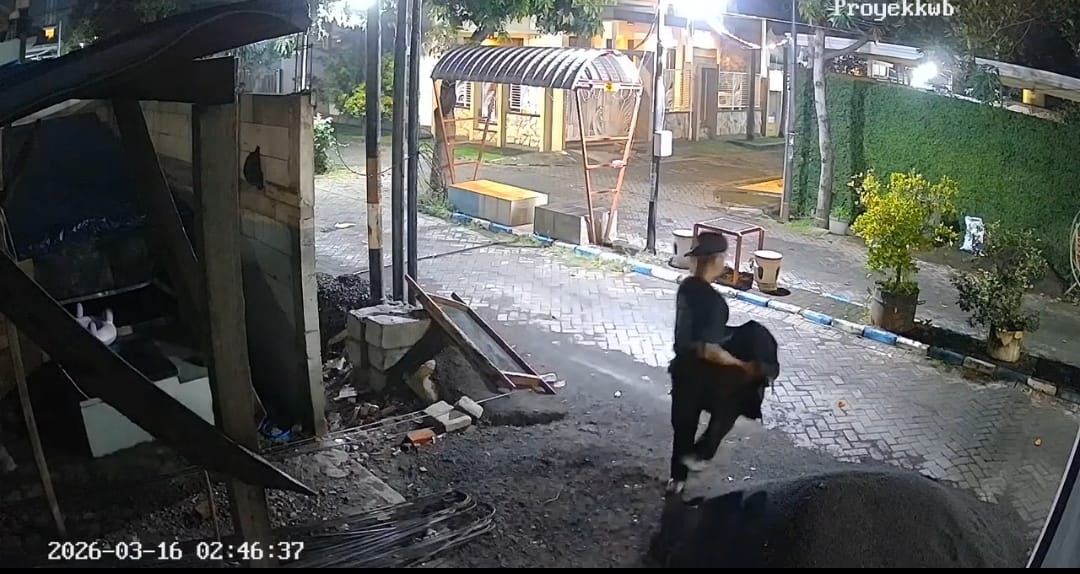 Dari rekaman CCTV yang diperoleh keluarga korban, terlihat seorang pria mengenakan pakaian serba hitam dengan celana panjang memasuki area perumahan. Pelaku sempat memantau situasi sekitar untuk memastikan kondisi aman sebelum melancarkan aksinya.