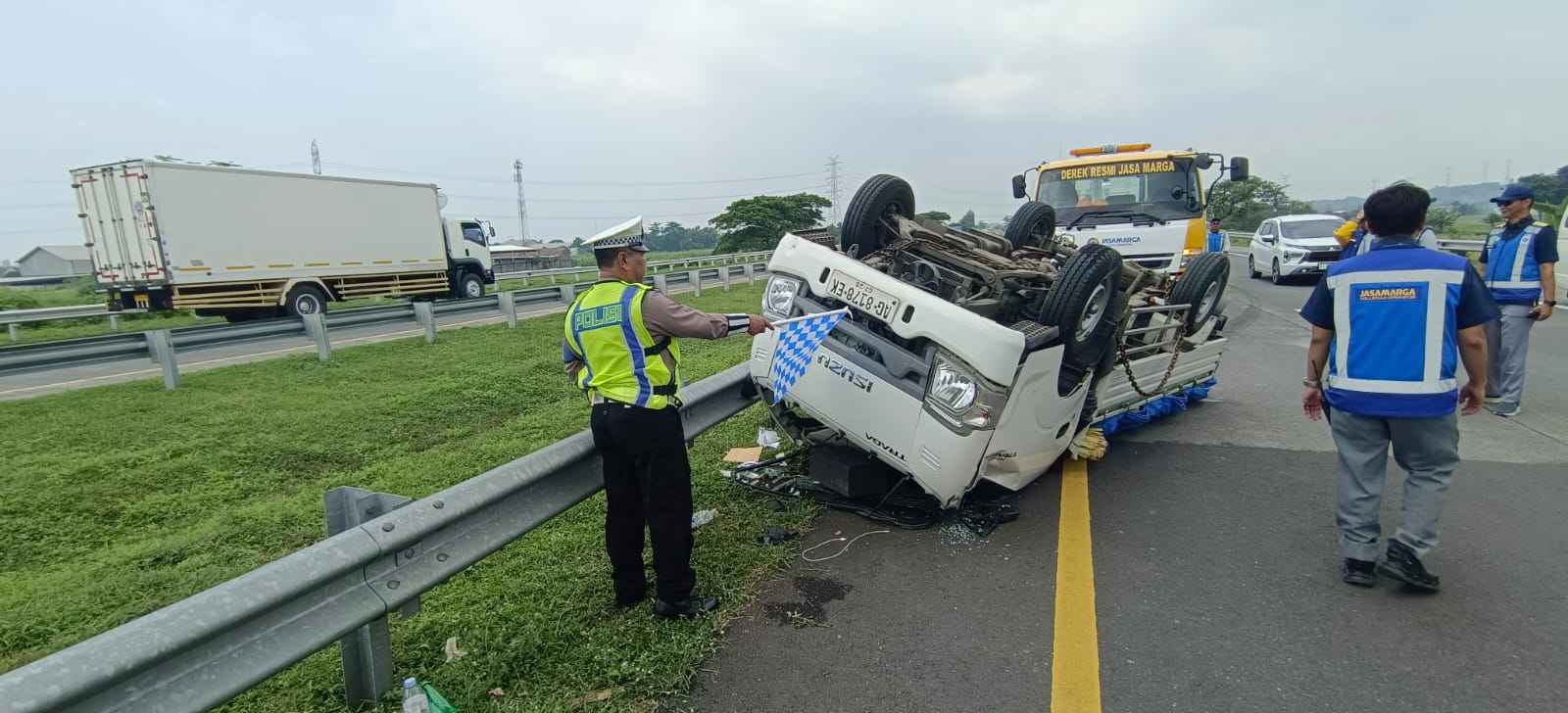 Sementara itu, arus lalu lintas di lokasi kejadian dilaporkan tetap lancar meski kondisi cuaca sedang mendung. Petugas PJR yang tiba di lokasi segera melakukan penanganan, termasuk mengevakuasi kendaraan ke Pos PJR Rembang.