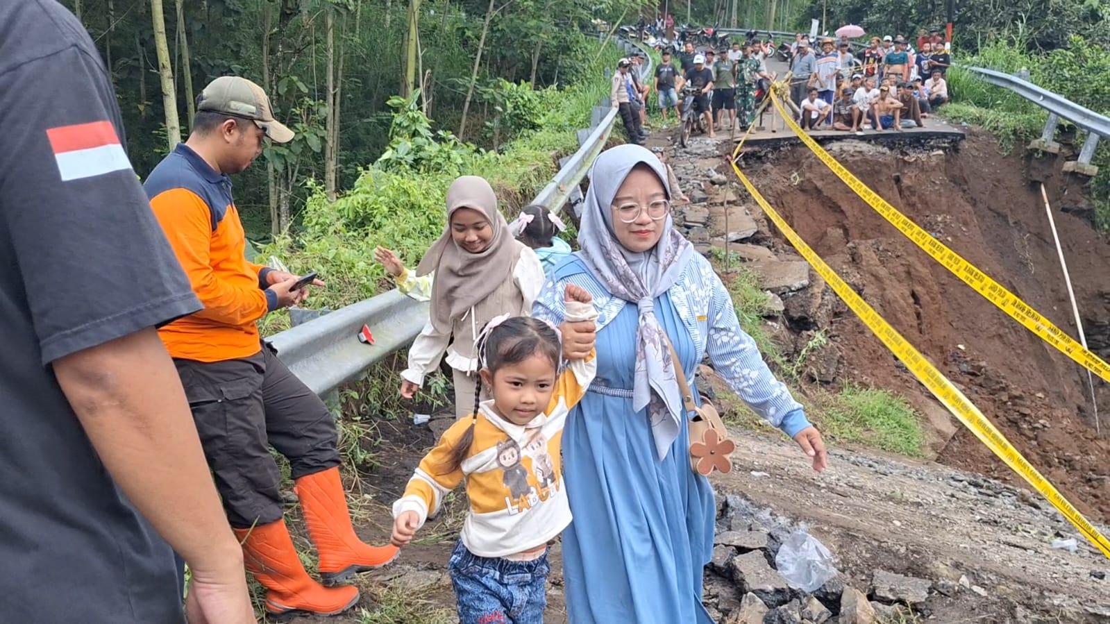 “Saya tidak tahu kalau ada longsor. Tadi sempat dicegat, saya kira ada hajatan warga, ternyata longsor,” ungkap Yulia, salah satu wisatawan.
