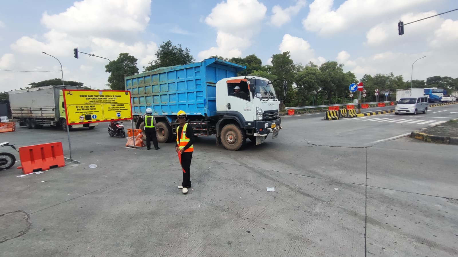 Ia menambahkan, hingga saat ini material proyek memang belum datang, sehingga rekayasa lalu lintas masih dalam tahap penyesuaian di lapangan.