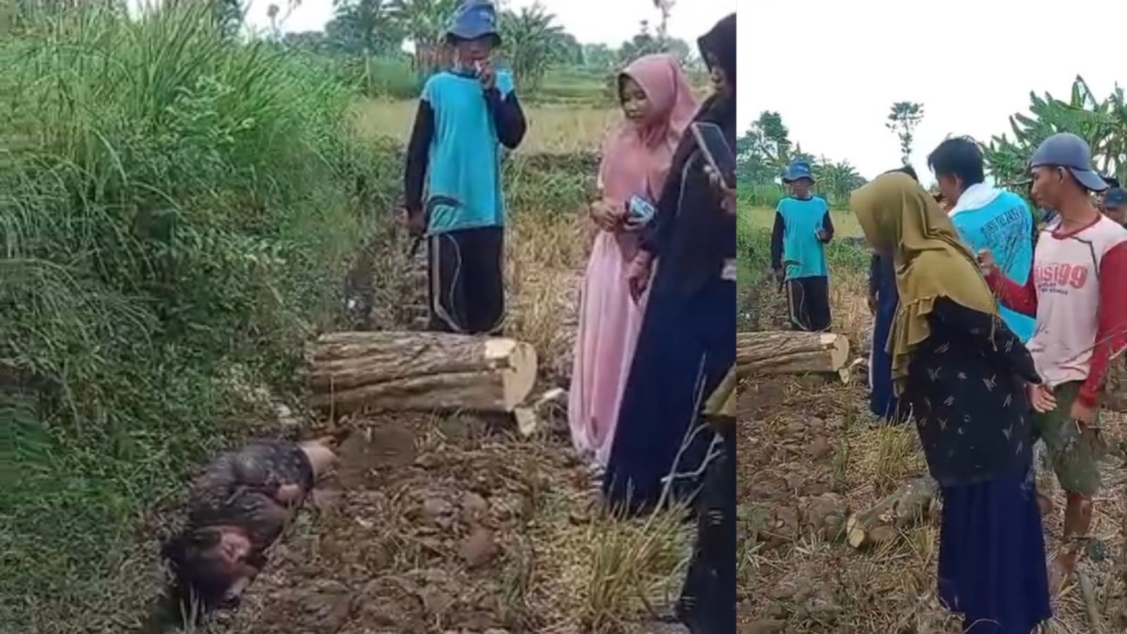 Dalam video amatir yang diterima redaksi, kondisi wanita tersebut dalam posisi pingsan dan terbaring miring di dalam parit.
