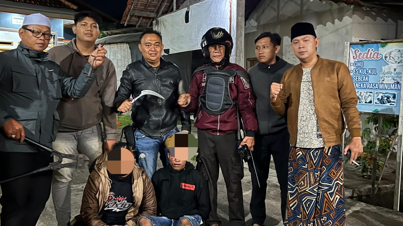 Setelah diamankan, polisi melakukan penggeledahan dan menemukan sejumlah barang bukti, antara lain senjata tajam jenis clurit dan pisau, serta peralatan yang diduga digunakan untuk aksi curanmor, seperti kunci T dan gunting pemotong baja.