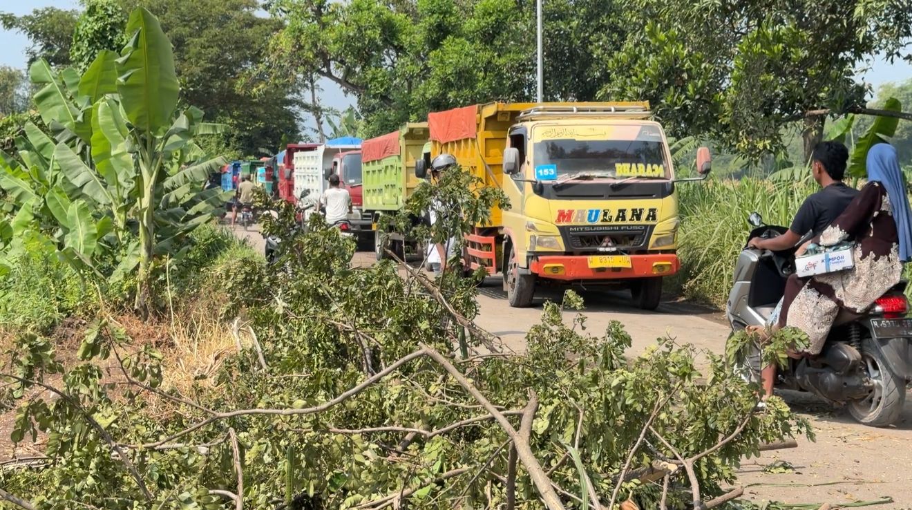 Penutupan dilakukan dengan cara swadaya. Warga memasang ranting-ranting pohon melintang di badan jalan hingga membuat akses lumpuh total. Dampaknya, puluhan truk bermuatan pasir tampak berhenti dan mengular di kedua sisi jalan. Momen tersebut juga sempat terekam dalam video yang beredar.