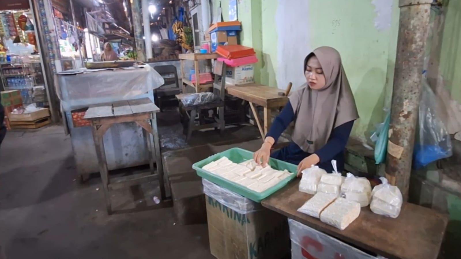 “Mau dinaikkan ya kasihan pelanggan, dipotong lebih kecil juga kasian, akhirnya kami yang mengalah, labanya dikurangi, hampir pok antara modal dan penghasilan,” sahut Karina, pedagang tempe.