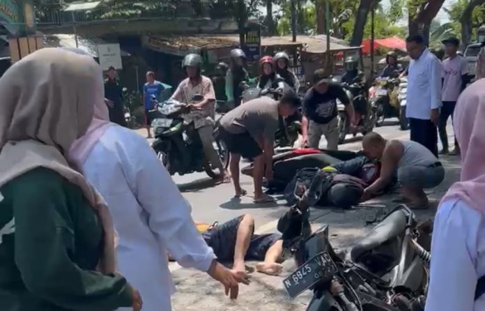 Kejayan (WartaBromo.com) – Kecelakaan lalu lintas terjadi di Jalan umum jurusan Pasuruan–Purwosari, tepatnya di depan Masjid Al Mabrur, Desa Sladi, Kecamatan Kejayan, Kabupaten Pasuruan. Dua pengendara motor mengalami luka-luka setelah terlibat tabrakan, Senin (21/4/2026) siang.