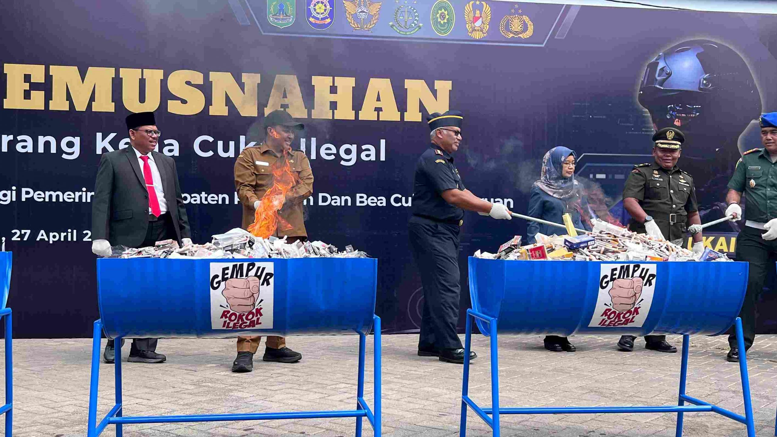 Ia merinci, barang yang dimusnahkan meliputi 4.233.186 batang rokok ilegal dengan berat 8.466.372 gram atau setara 8,466 ton. Selain itu, turut dimusnahkan tembakau iris (TIS) seberat 15.000 gram atau 0,015 ton.