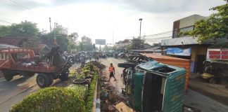 Truk Kontainer Tabrak Traffic Light di Simpang 4 Gadingrejo, Jalur Pantura...