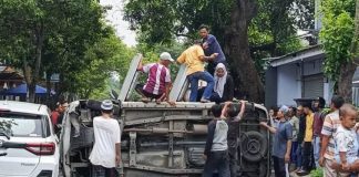 Diduga Hindari Motor, Minibus Avanza di Gentong Terguling di Tengah Jalan