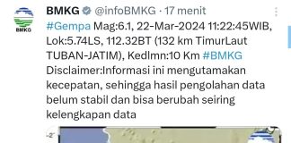 Gempa 6,0 Magnitudo di Tuban Terasa Hingga Pasuruan