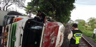 Truk Semen Terguling di Dekat Rel Porong–Bangil, Dua KA Tertahan hingga...