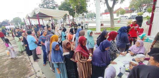 Demi Beras Rp50 Ribu, Para Ibu di Kota Pasuruan Antre Panjang Sejak Pagi