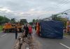 Sopir Truk ‘Napolly’ Asal Singosari Banting Kemudi hingga Truk Terguling di...