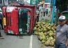 Truk Pengangkut Elpiji Terguling di Simpang Empat Warungdowo