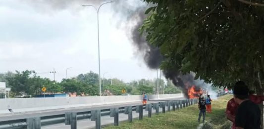 Mobil Elf Terbakar di Tol Pandaan-Malang, Arus Lalu Lintas Dialihkan Masuk ke Rest Area KM 66