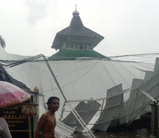 Hujan Lebat, Atap Teras Masjid di Wonorejo Ambruk