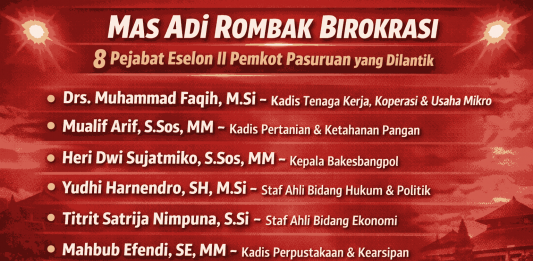 Wali Kota Rombak Birokrasi, Ini Daftar 8 Pejabat Eselon II Baru Pemkot Pasuruan